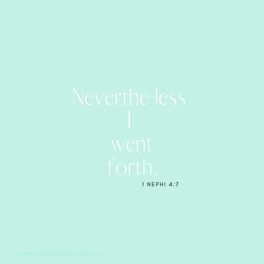 Nephi had such pure faith that he didn’t even question.. Nevertheless I went forth! Therefore I did obey!